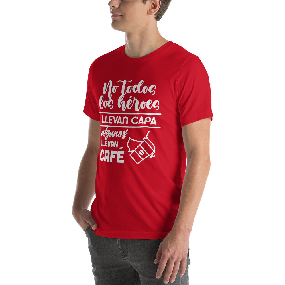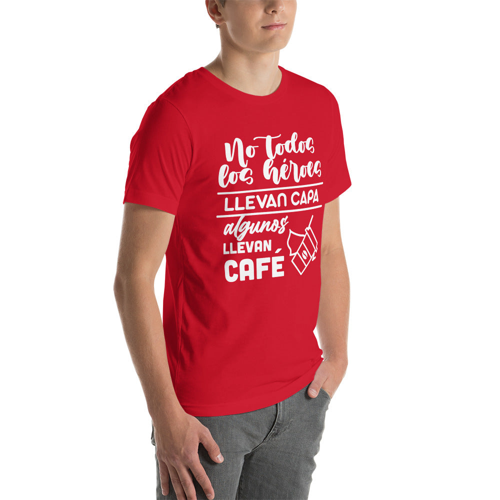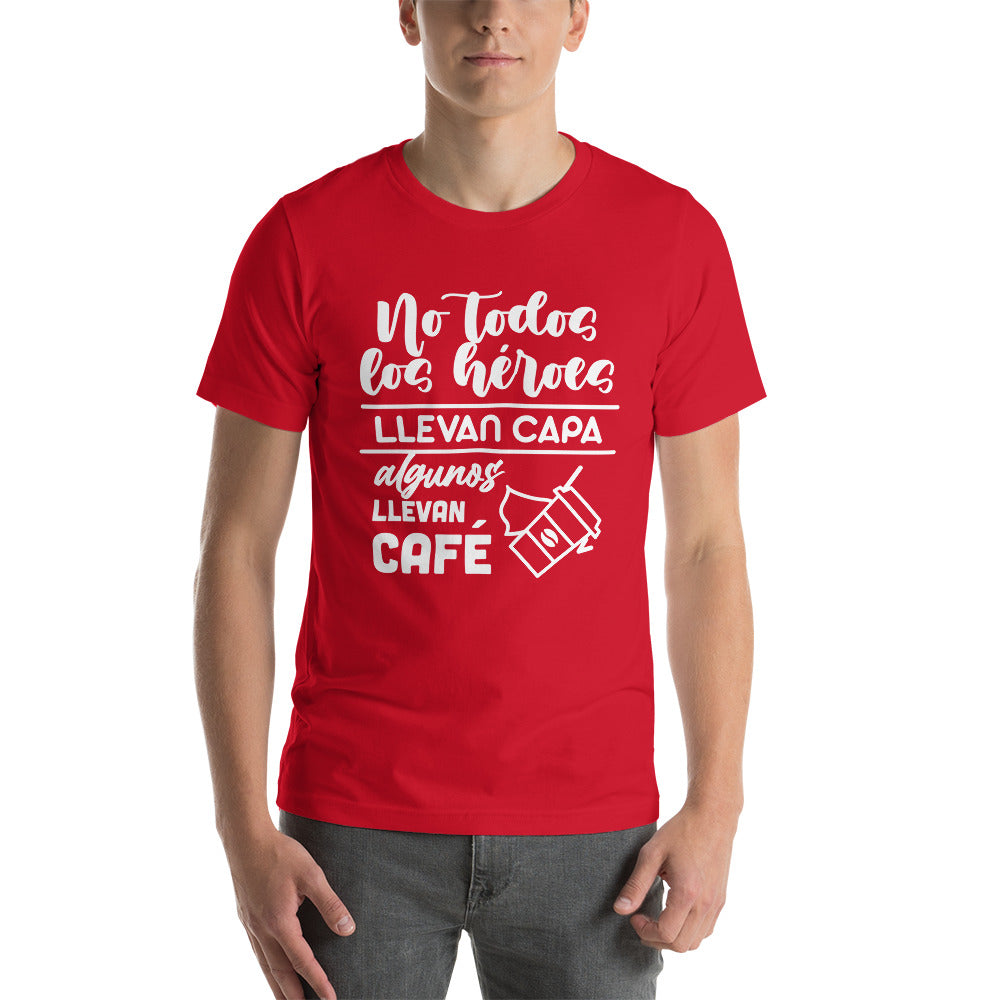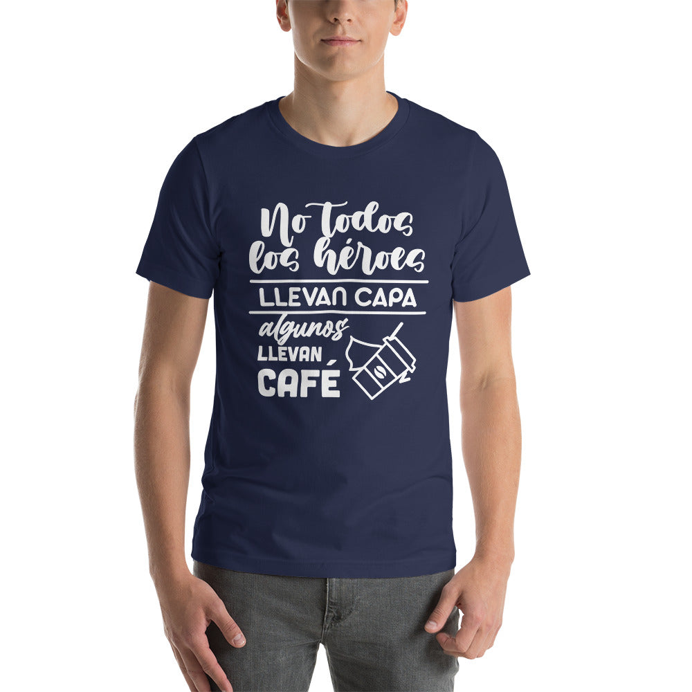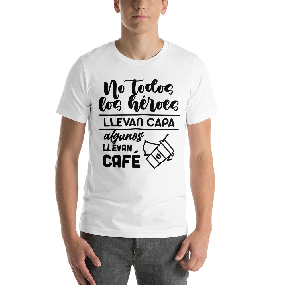 Camiseta hombre graciosa "No todos los héroes llevan capa, algunos llevan café"