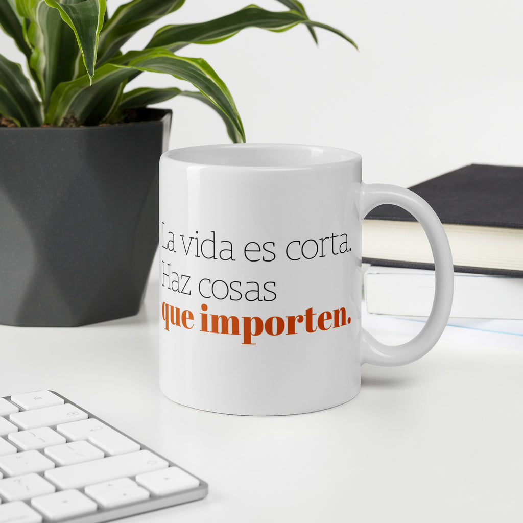 Taza motivacional "La vida es corta. Haz cosas que importen."