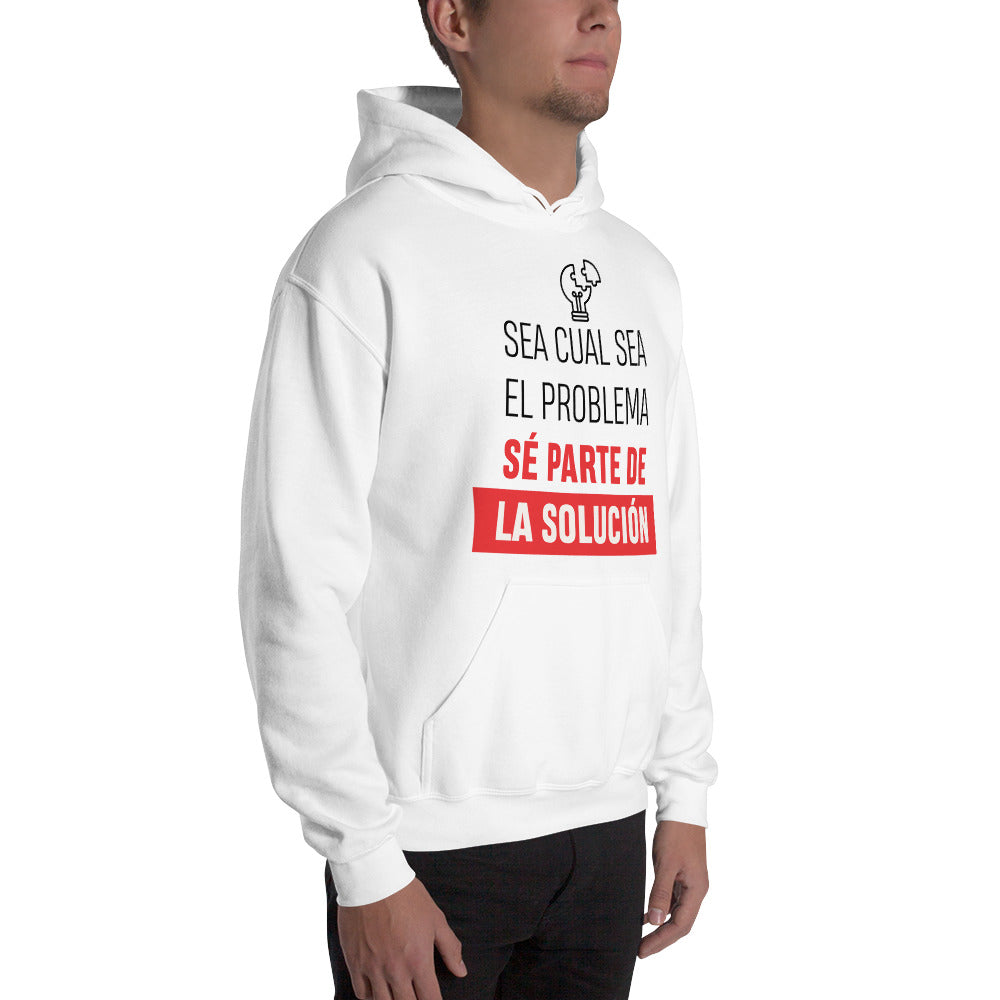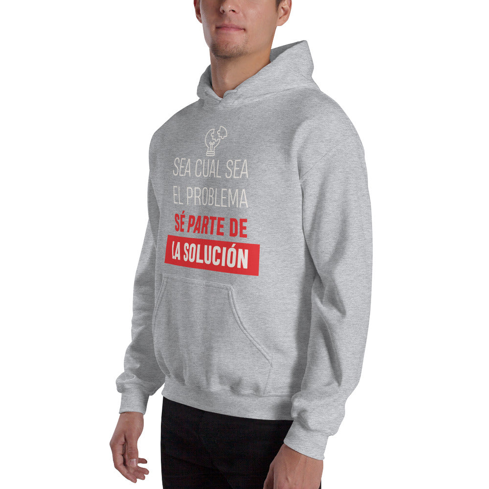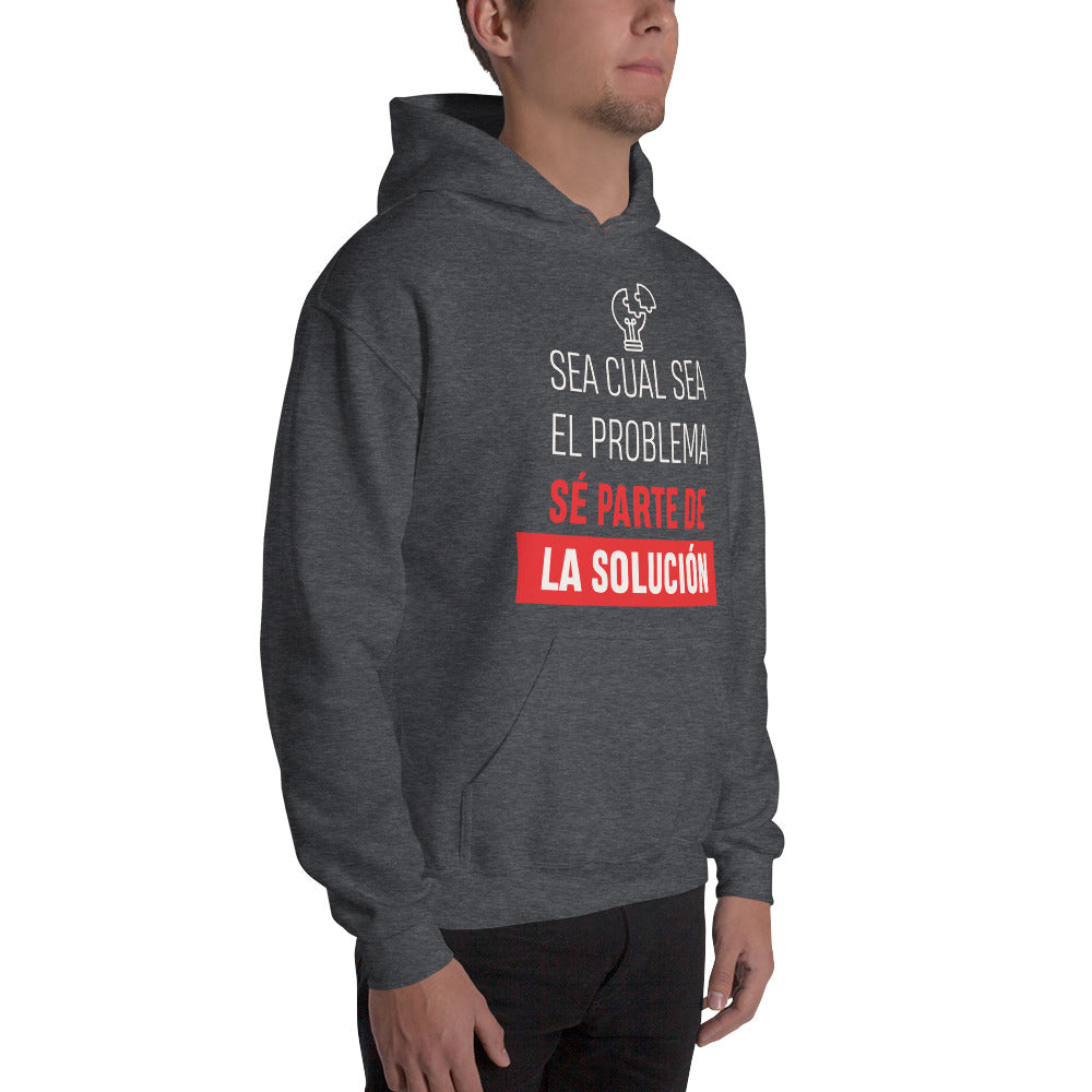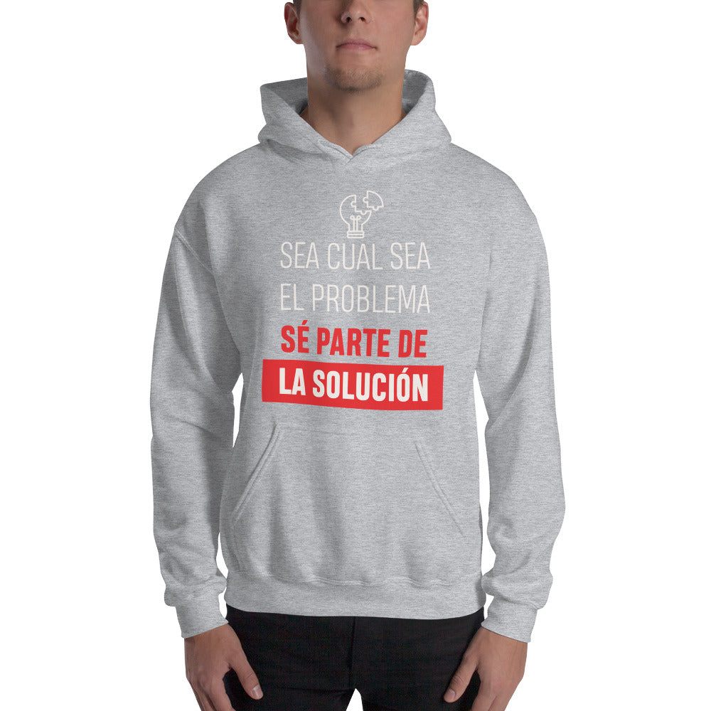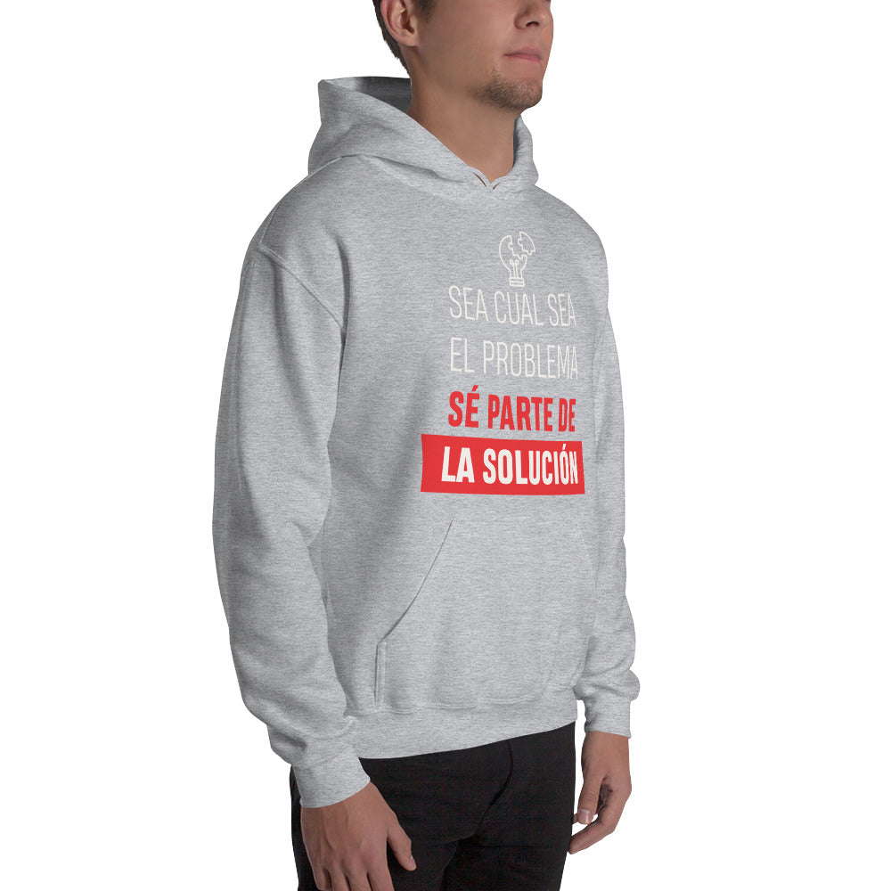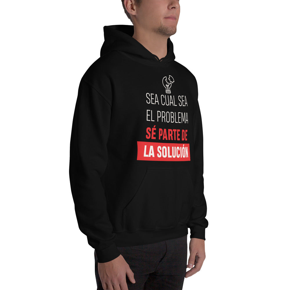 Sudadera con capucha hombre motivacional "Sea cual sea el problema, sé parte de la solución"