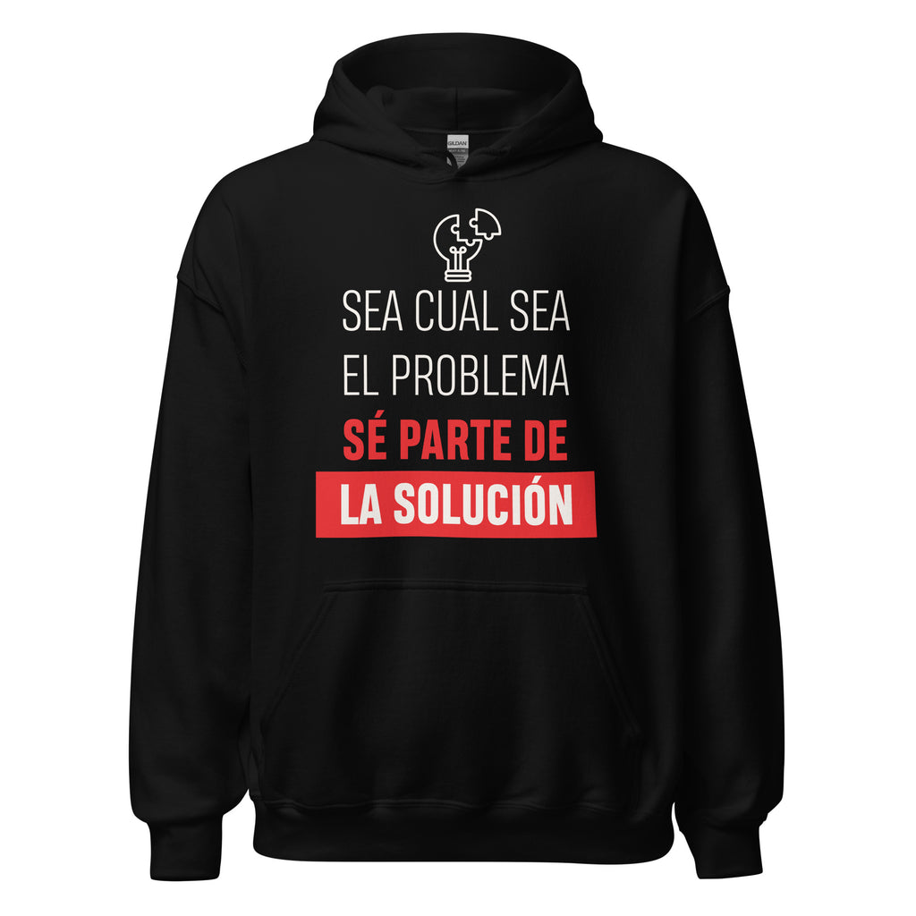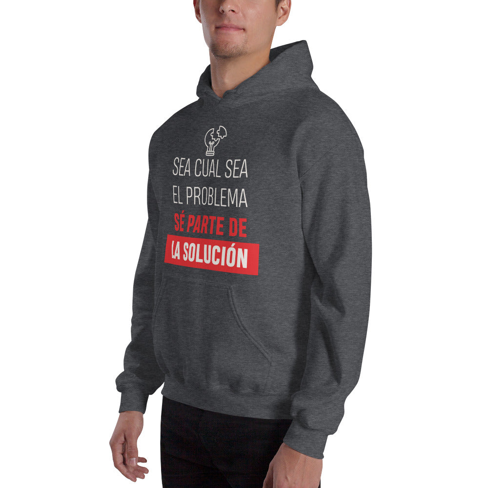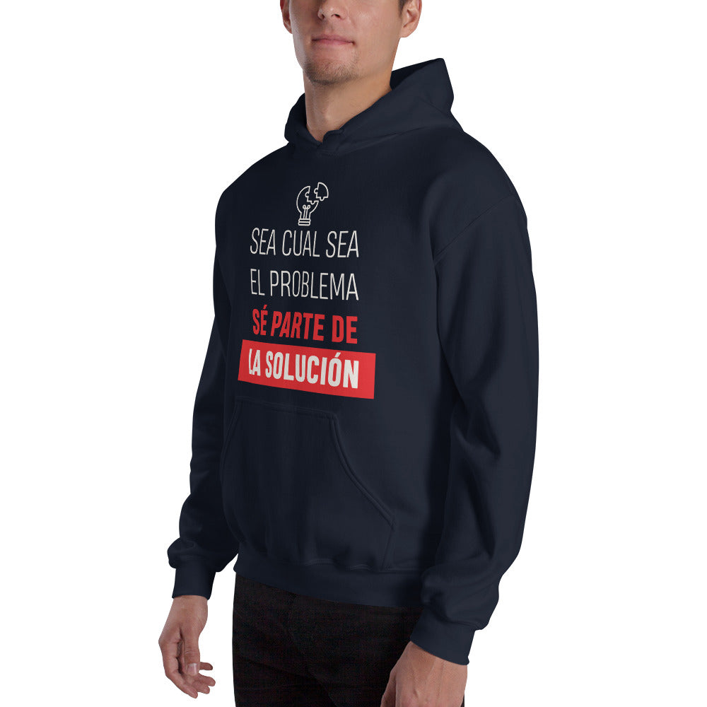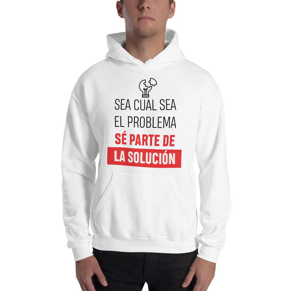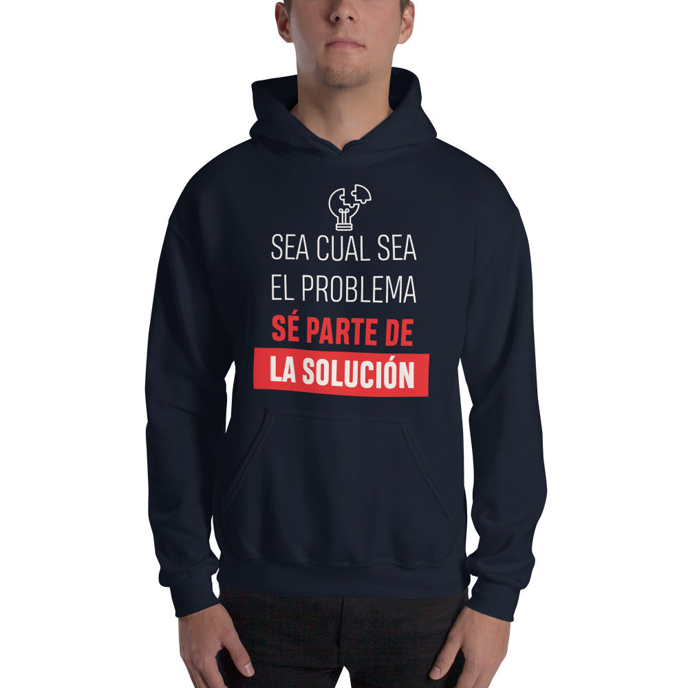 Sudadera con capucha hombre motivacional "Sea cual sea el problema, sé parte de la solución"