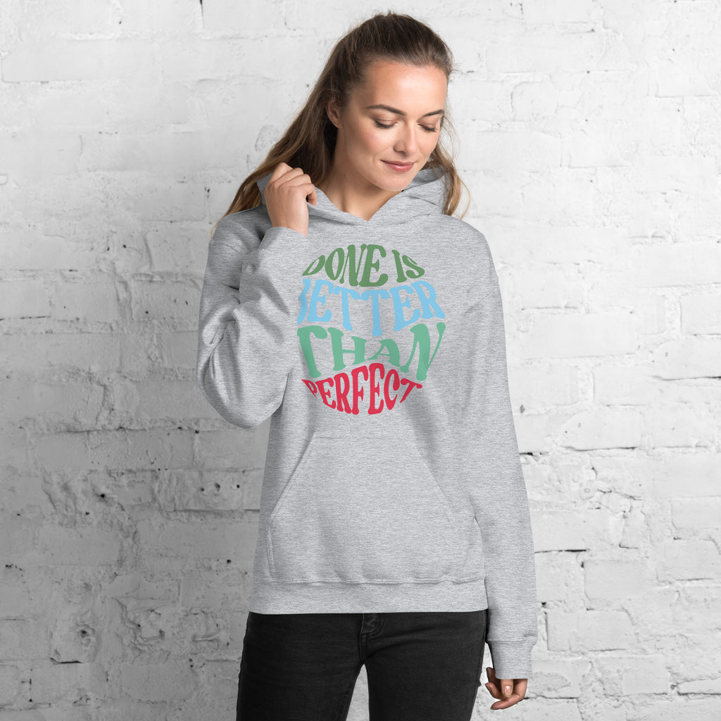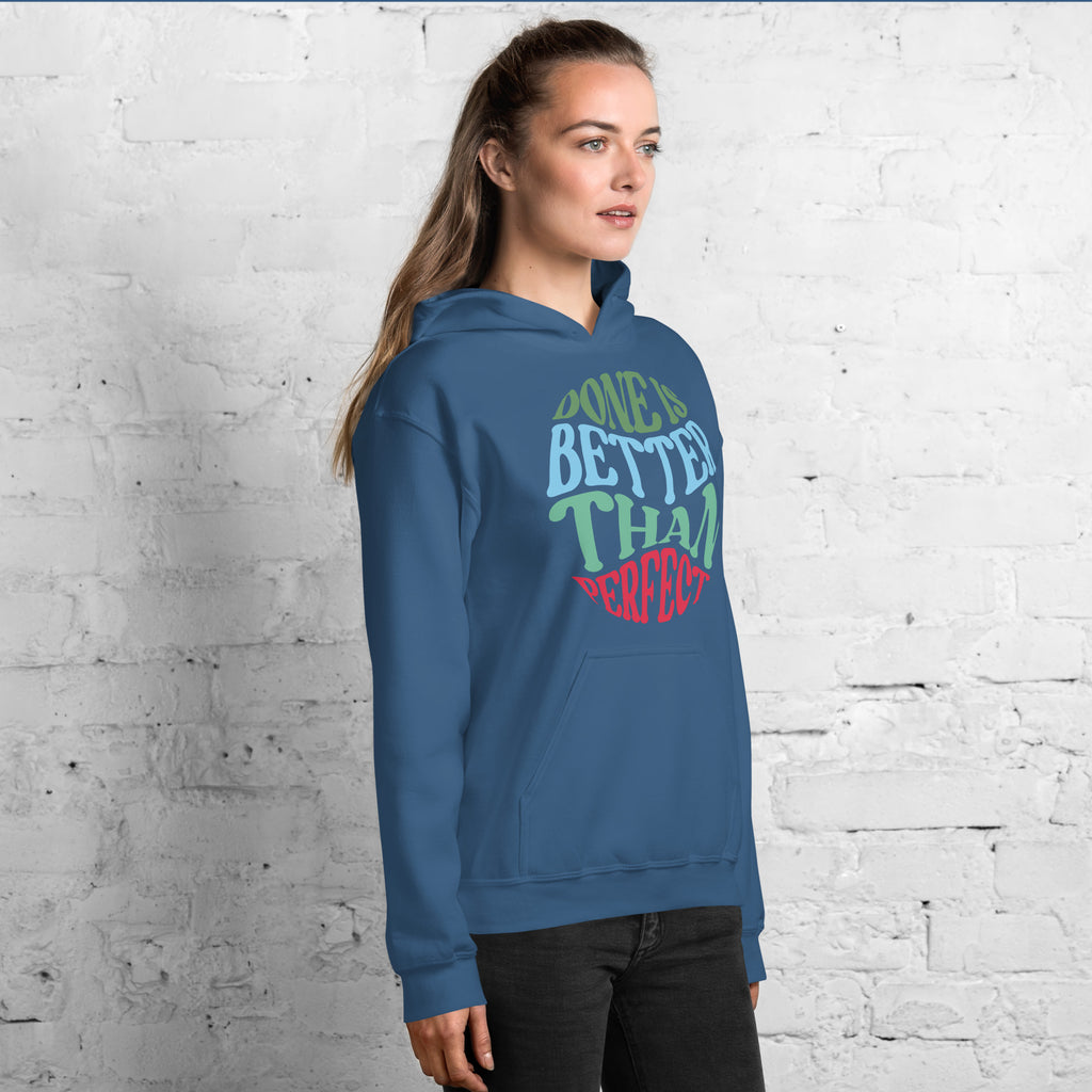 Sudadera con capucha mujer motivacional "Done is better than perfect"