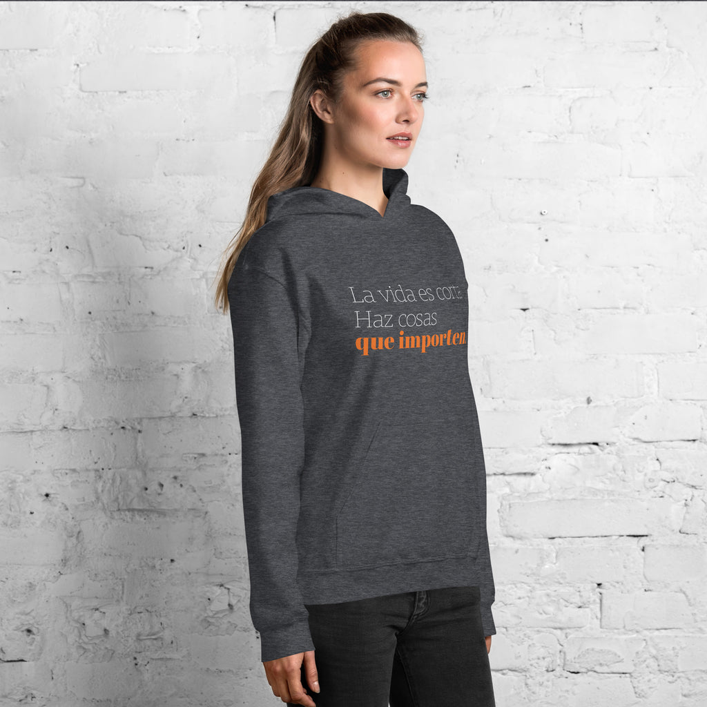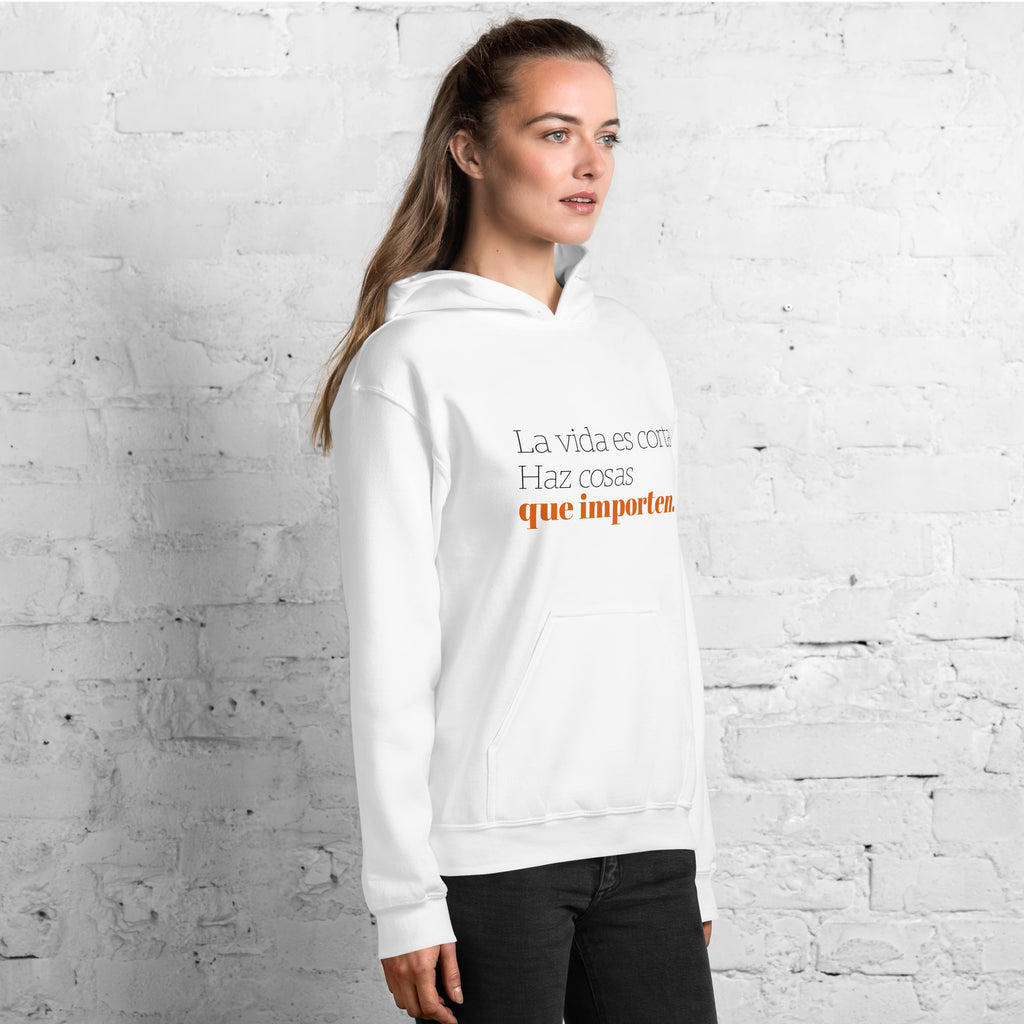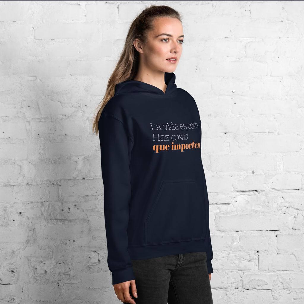 Sudadera con capucha mujer motivacional "La vida es corta. Haz cosas que importen."