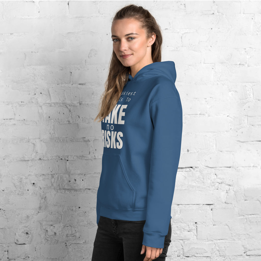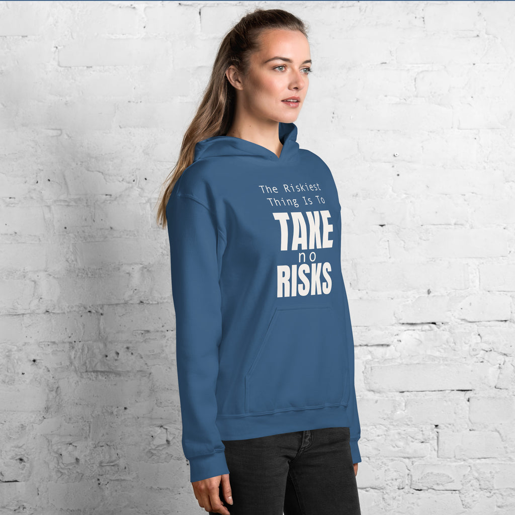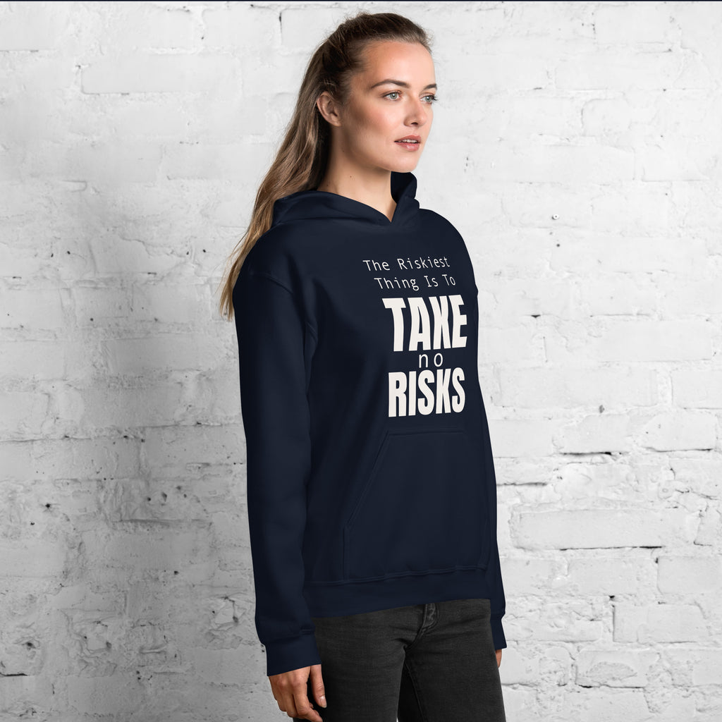 Sudadera con capucha mujer motivacional "The Riskiest Thing Is To Take No Risks"