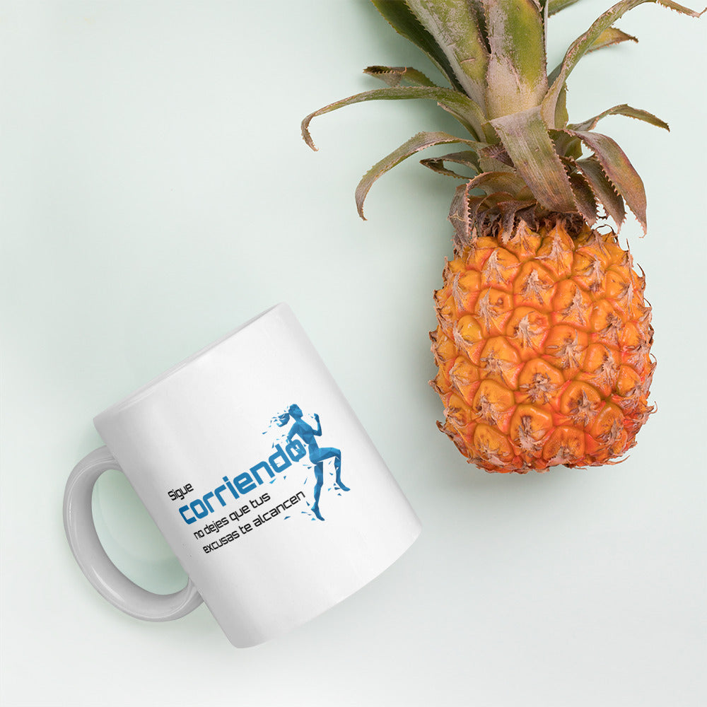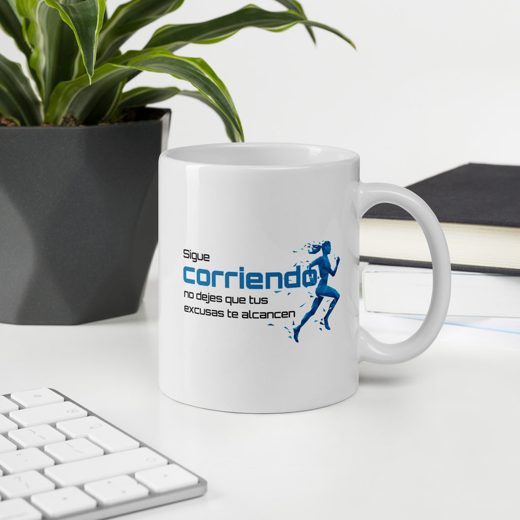 Taza motivacional "Sigue corriendo, no dejes que tus excusas te alcancen"