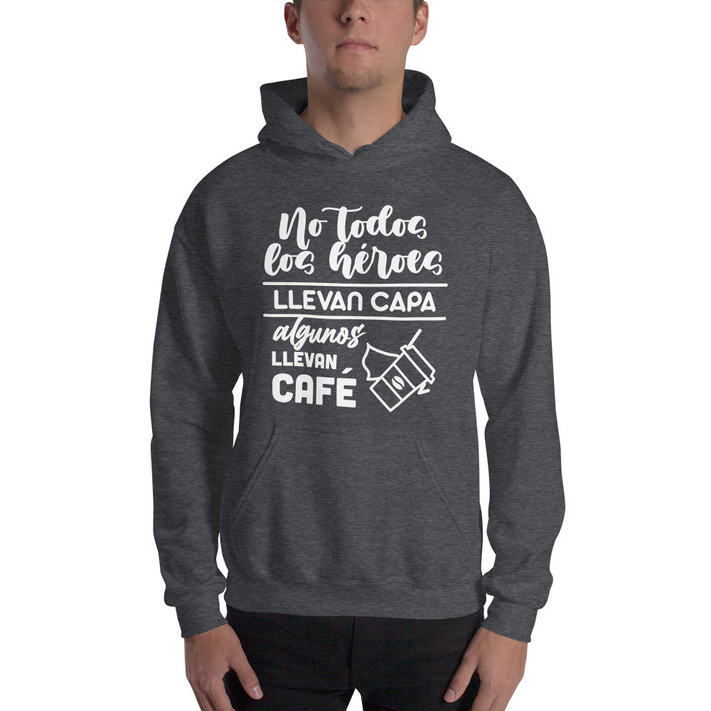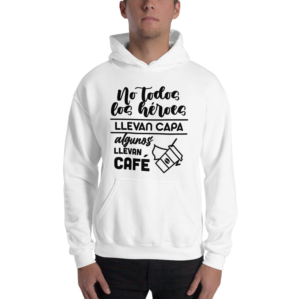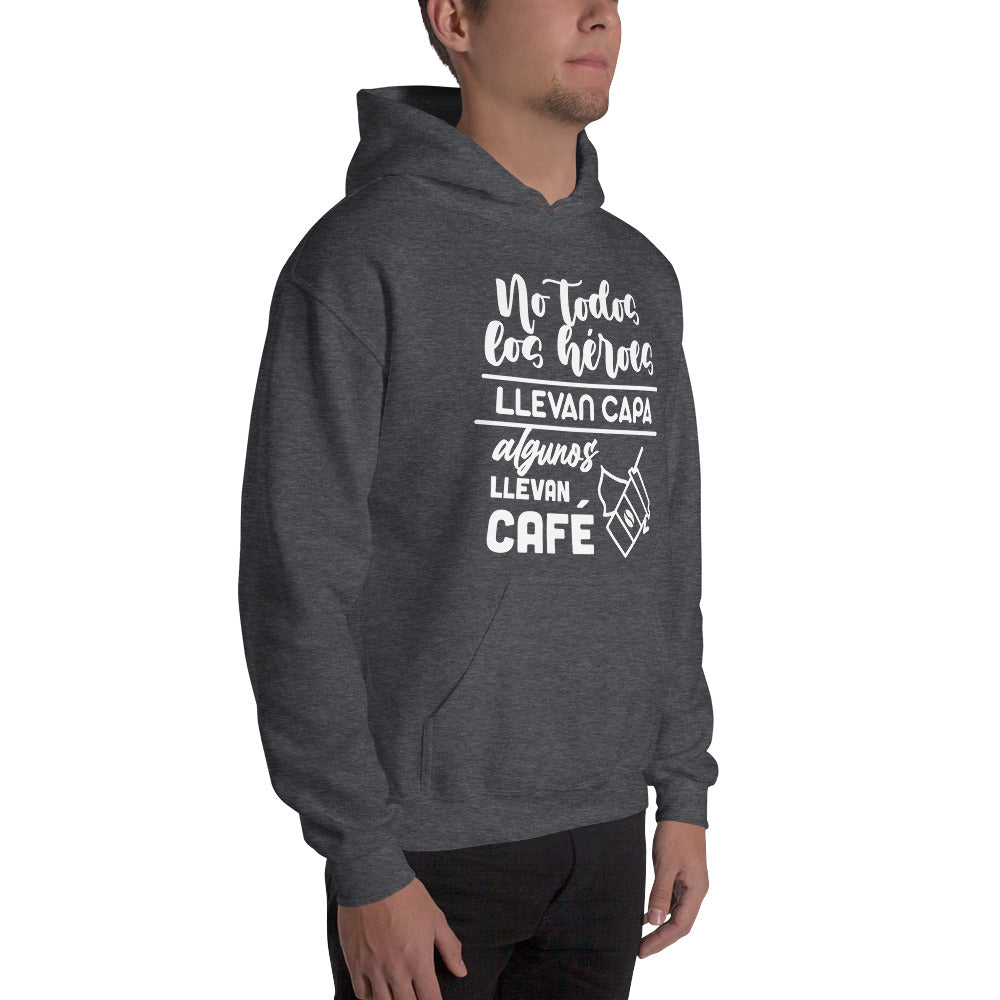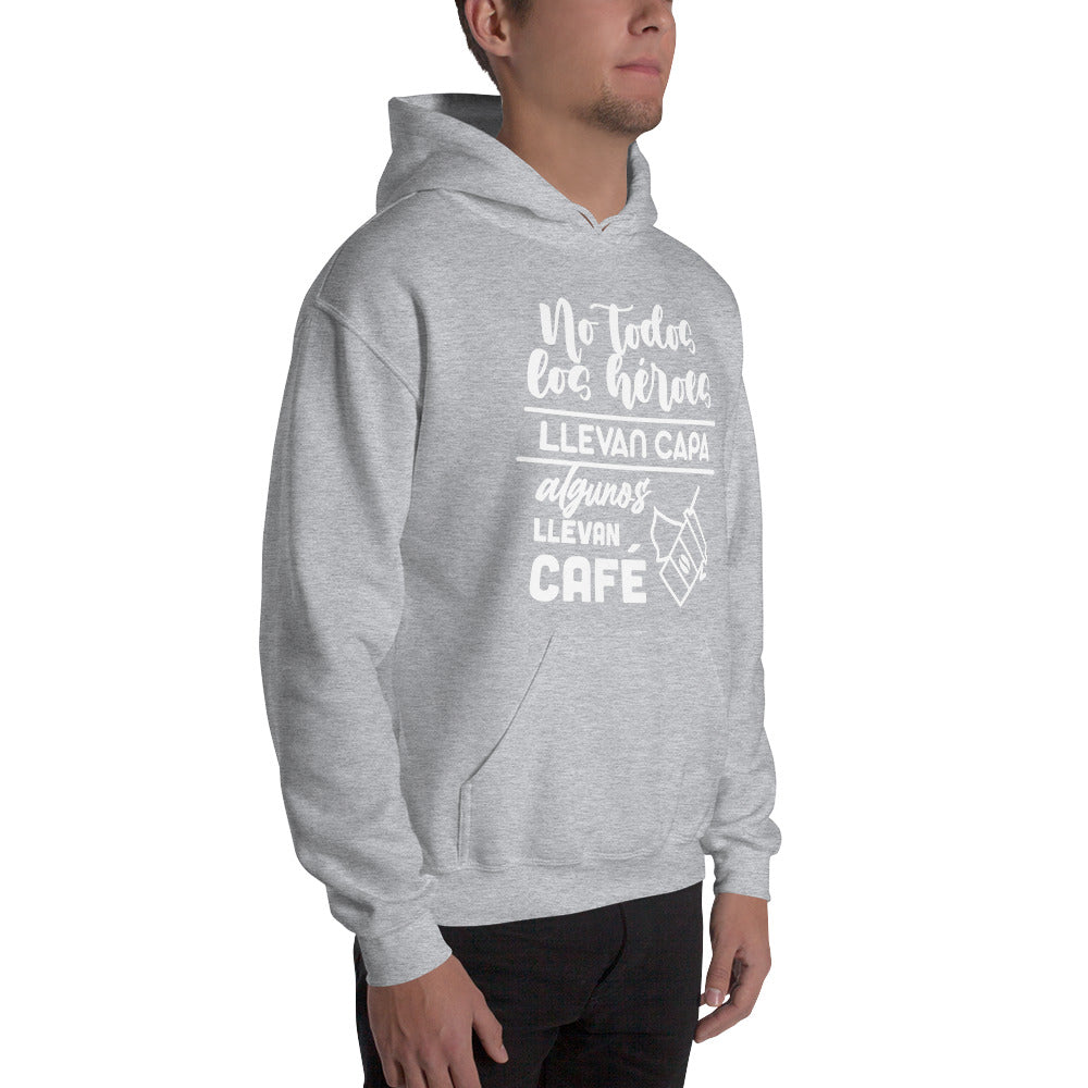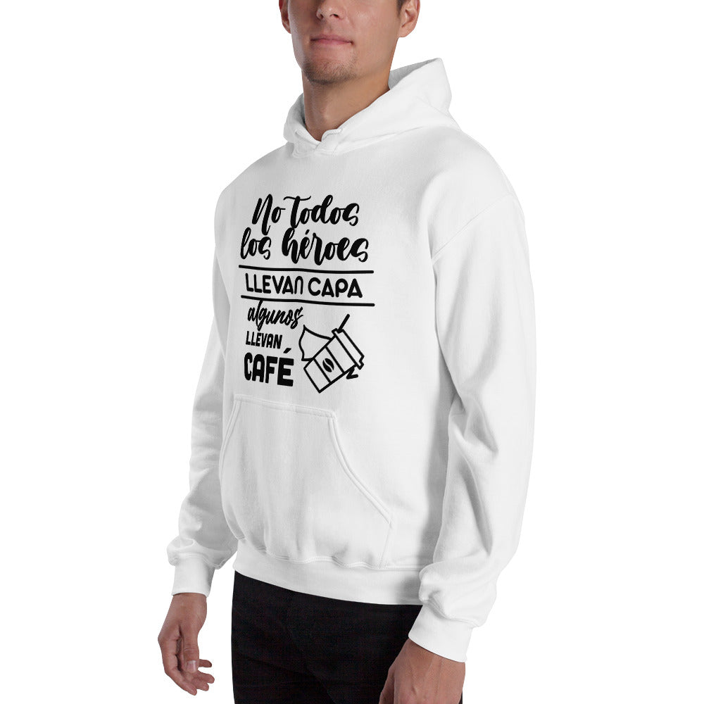Sudadera con capucha hombre graciosa "No todos los héroes llevan capa, algunos llevan café"