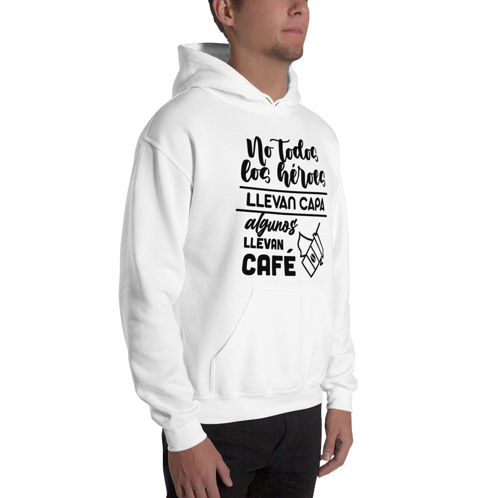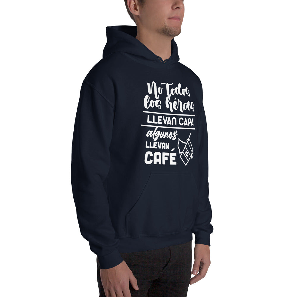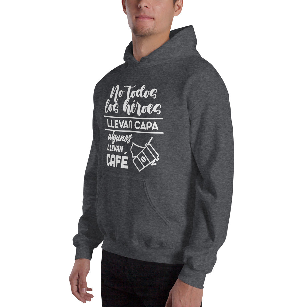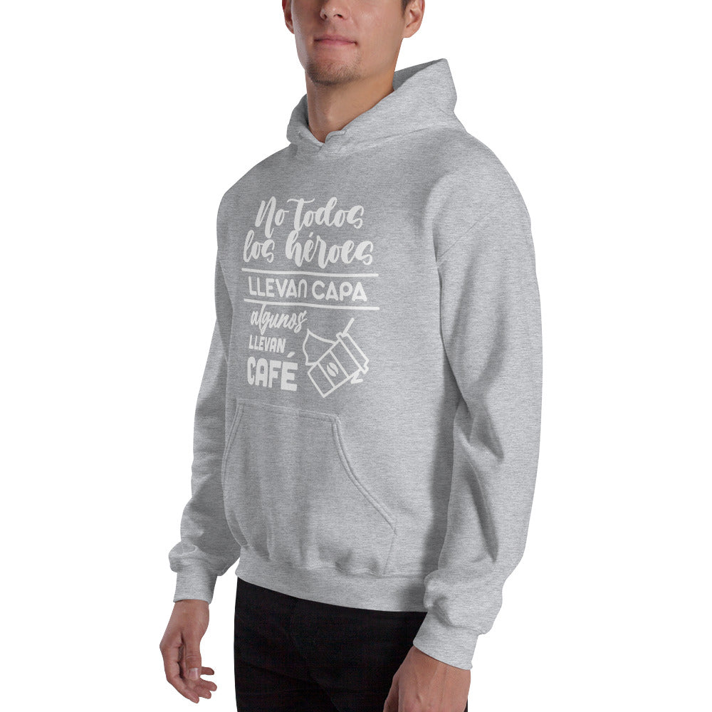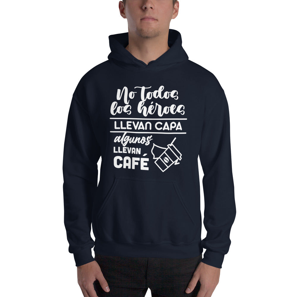 Sudadera con capucha hombre graciosa "No todos los héroes llevan capa, algunos llevan café"