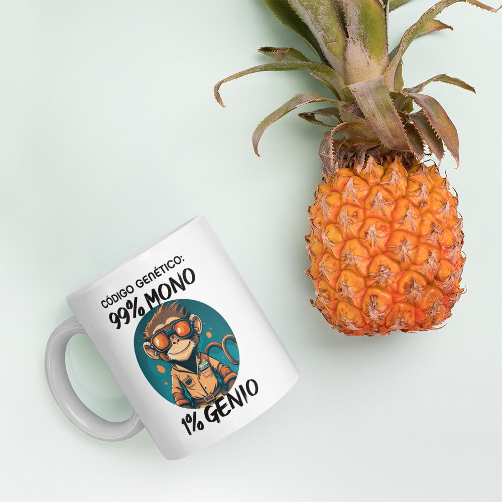 Taza frase graciosa "Código genético: 99% mono, 1% genio"