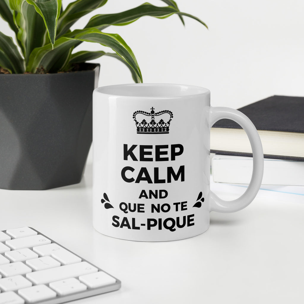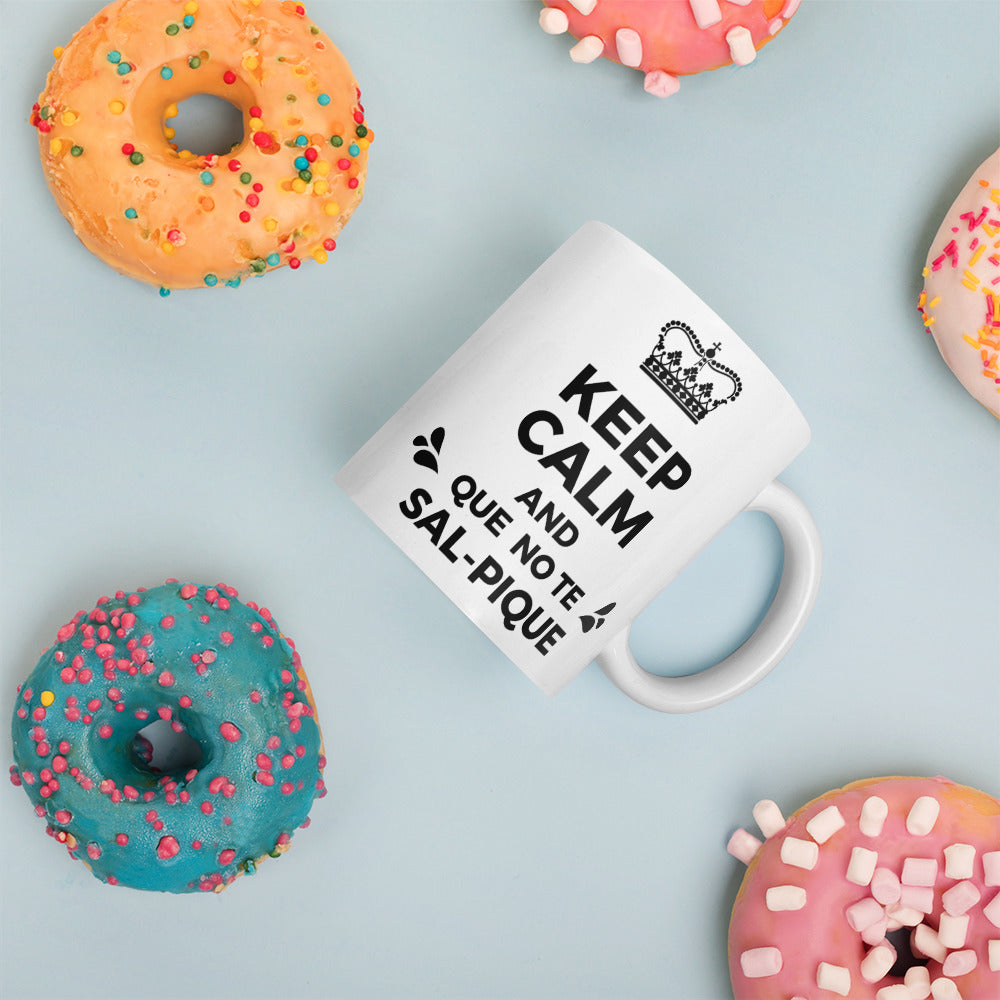 Taza frase graciosa "KEEP CALM AND QUE NO TE SAL-PIQUE"