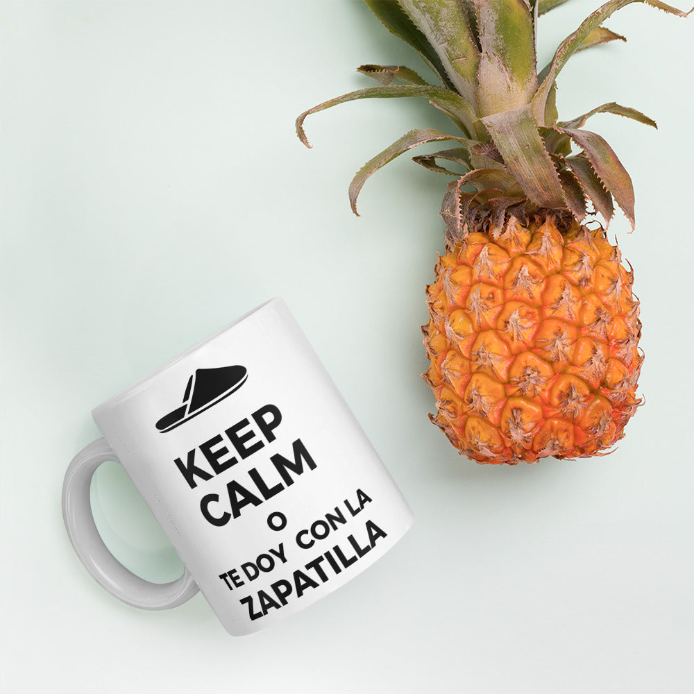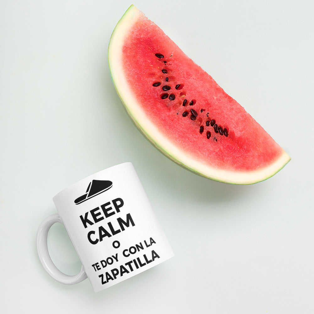 Taza frase graciosa "KEEP CALM O TE DOY CON LA ZAPATILLA"