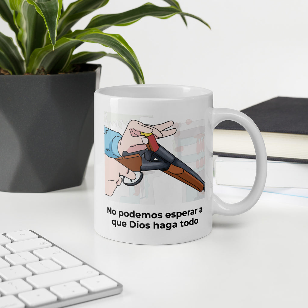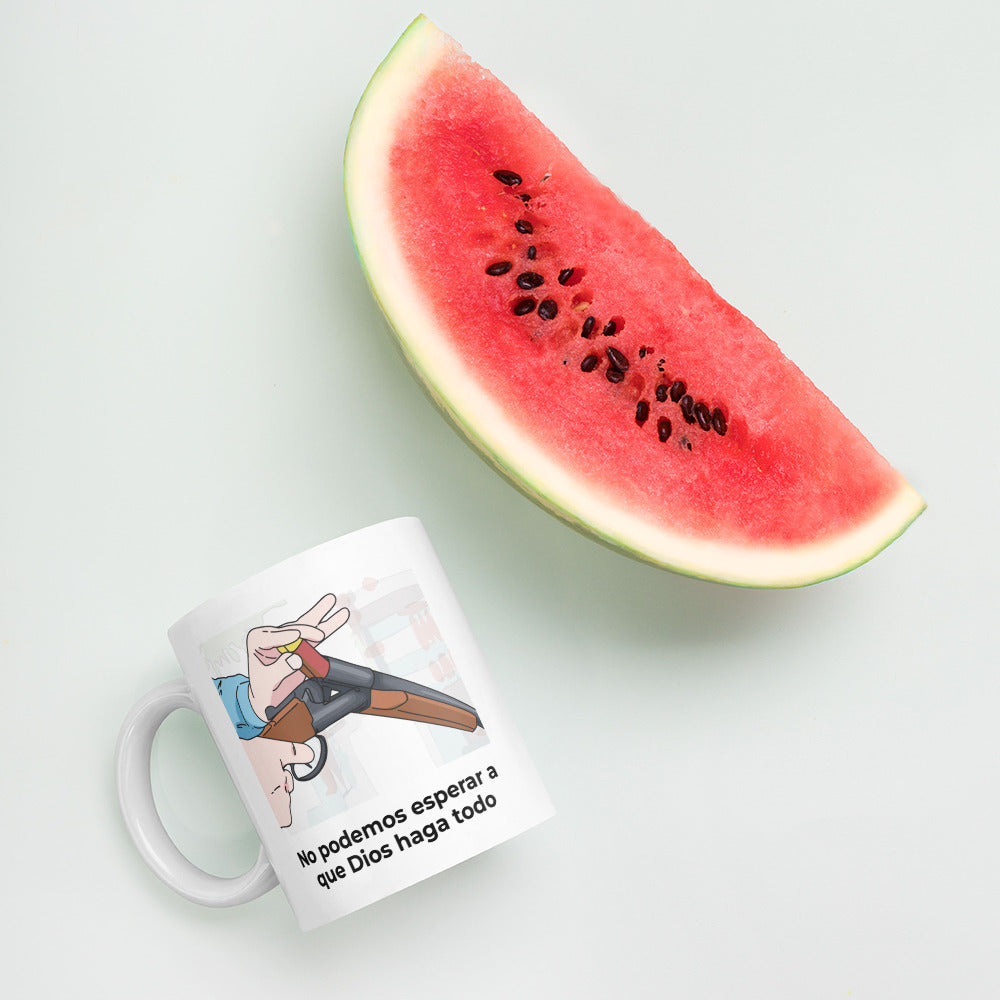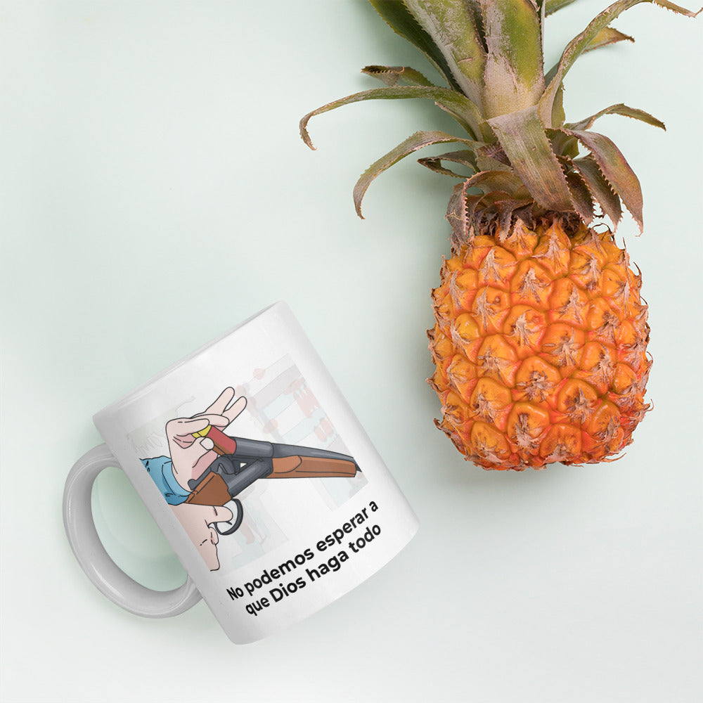 Taza frase graciosa "No podemos esperar a que Dios haga todo"