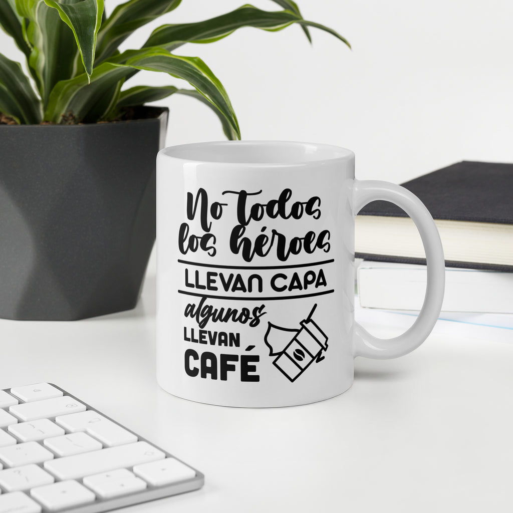 Taza frase graciosa "No todos los héroes llevan capa, algunos llevan café"