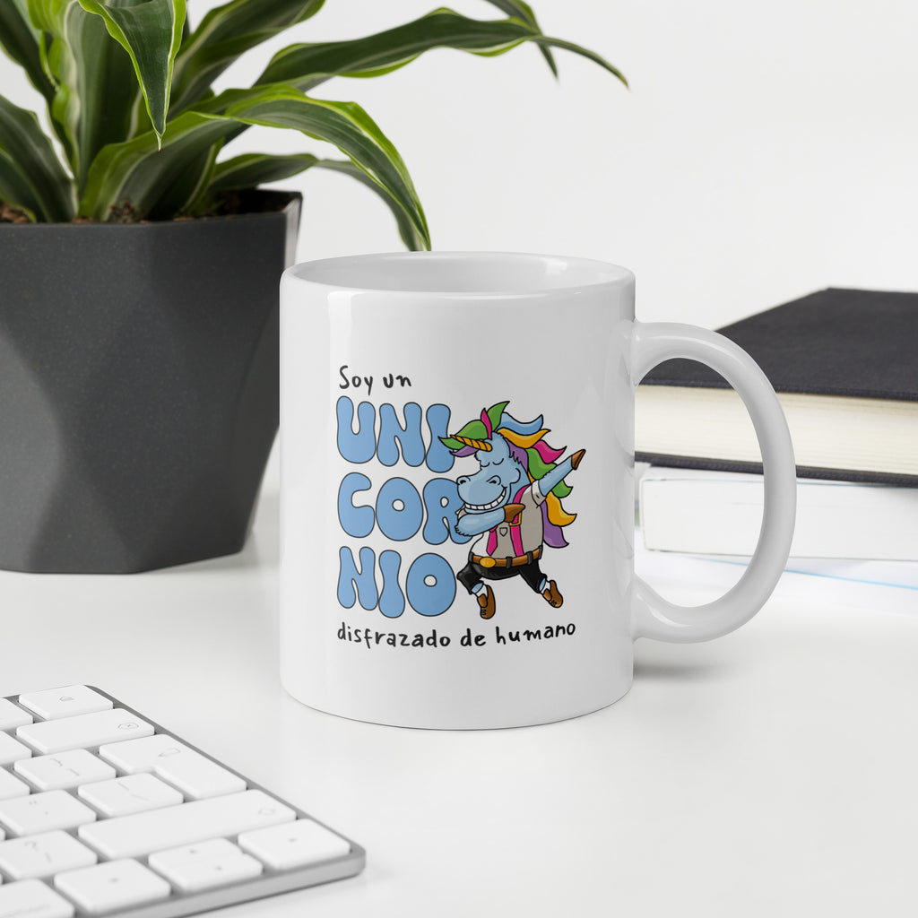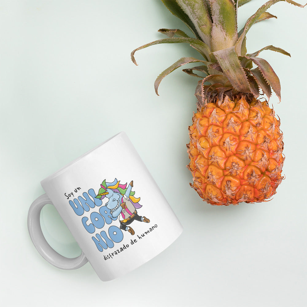 Taza frase graciosa "Soy un unicornio disfrazado de humano"