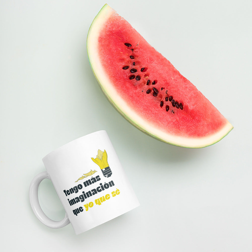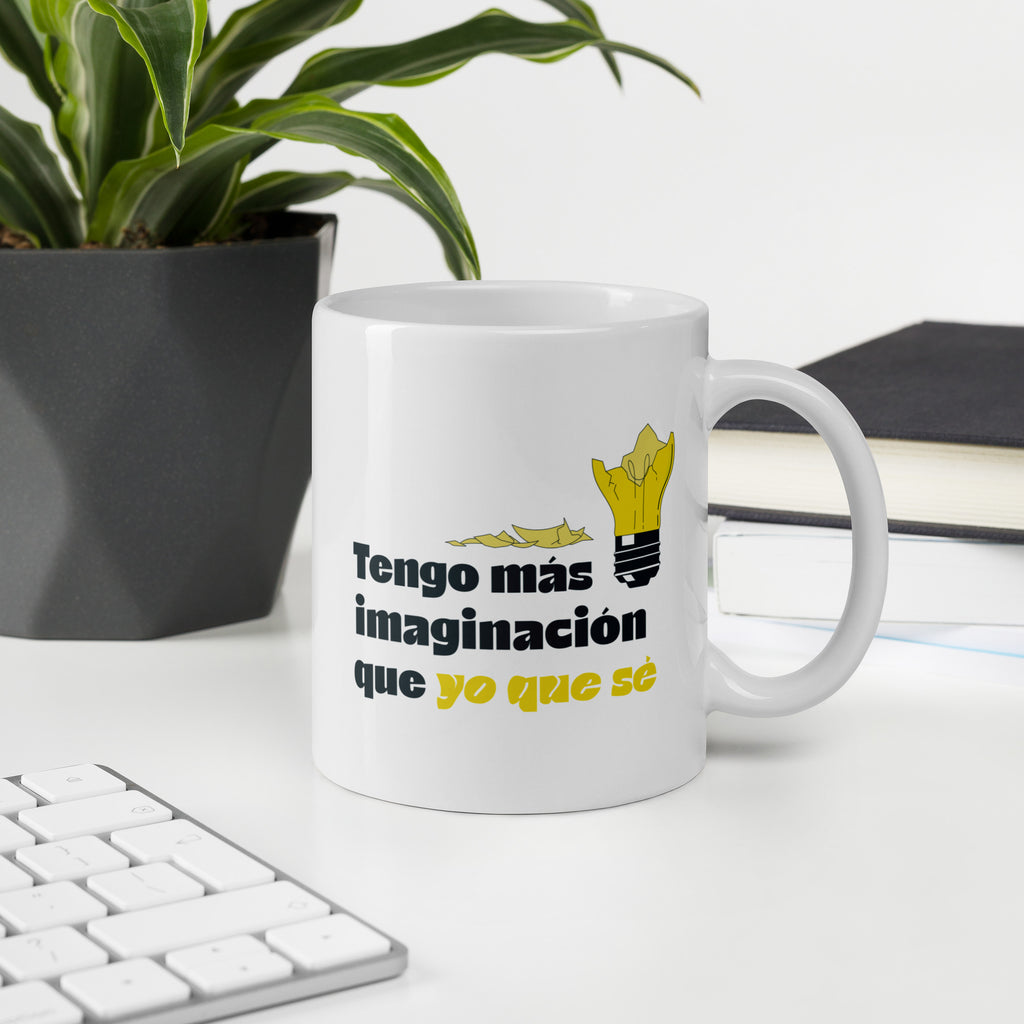 Taza frase graciosa "Tengo más imaginación que yo que sé"