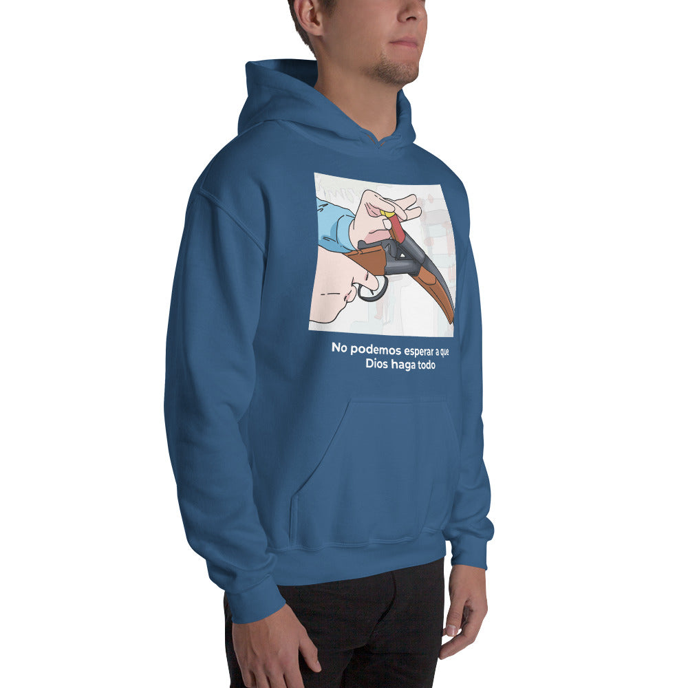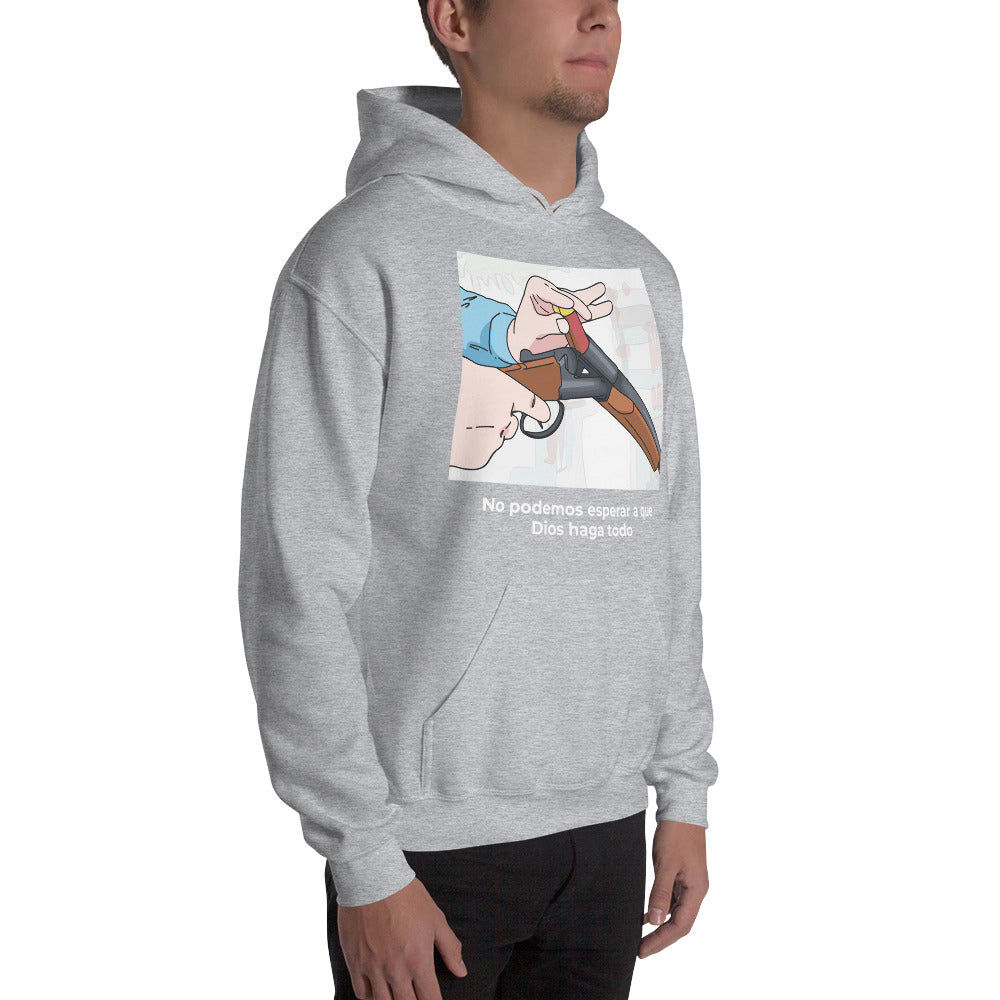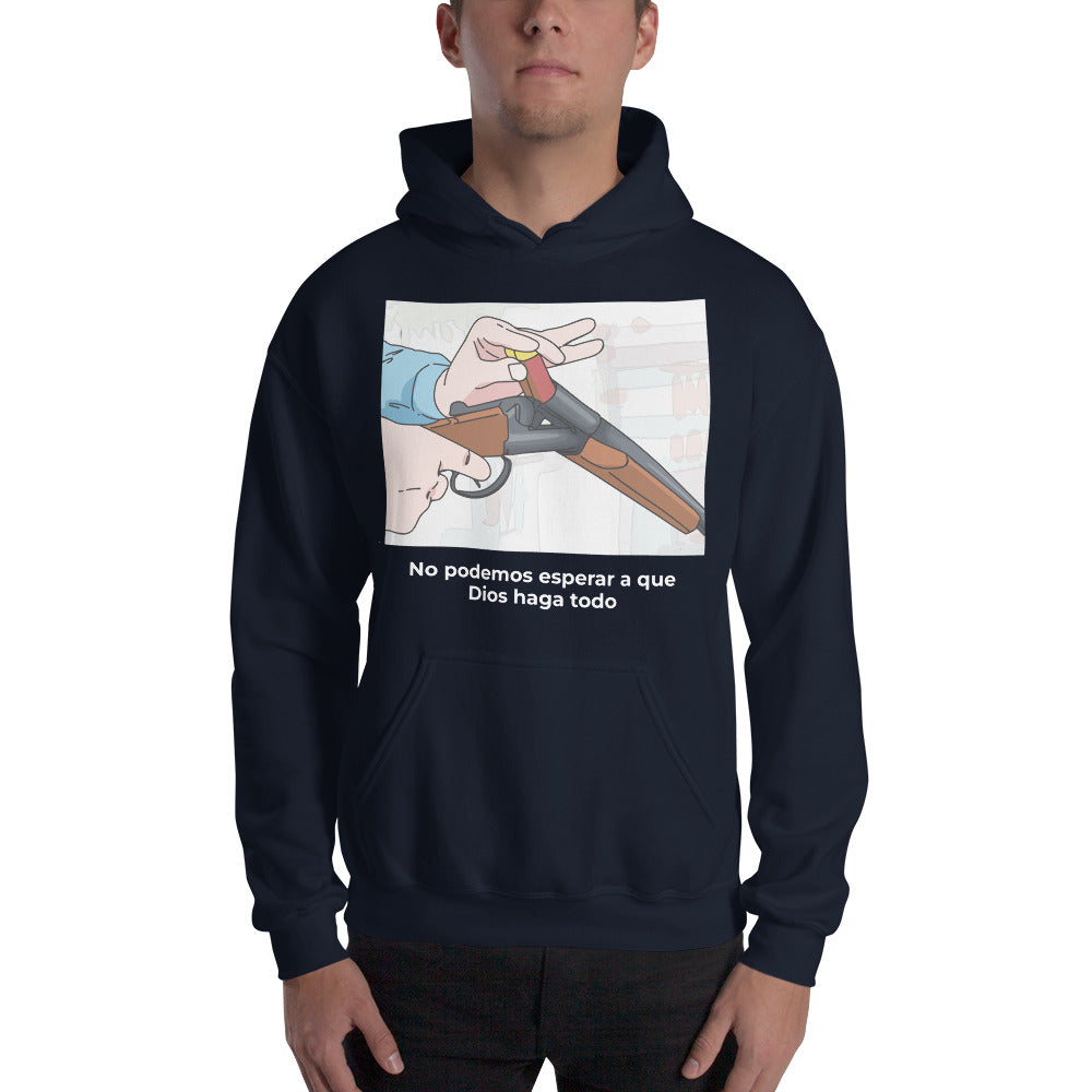 Sudadera hombre "No podemos esperar a que Dios haga todo"