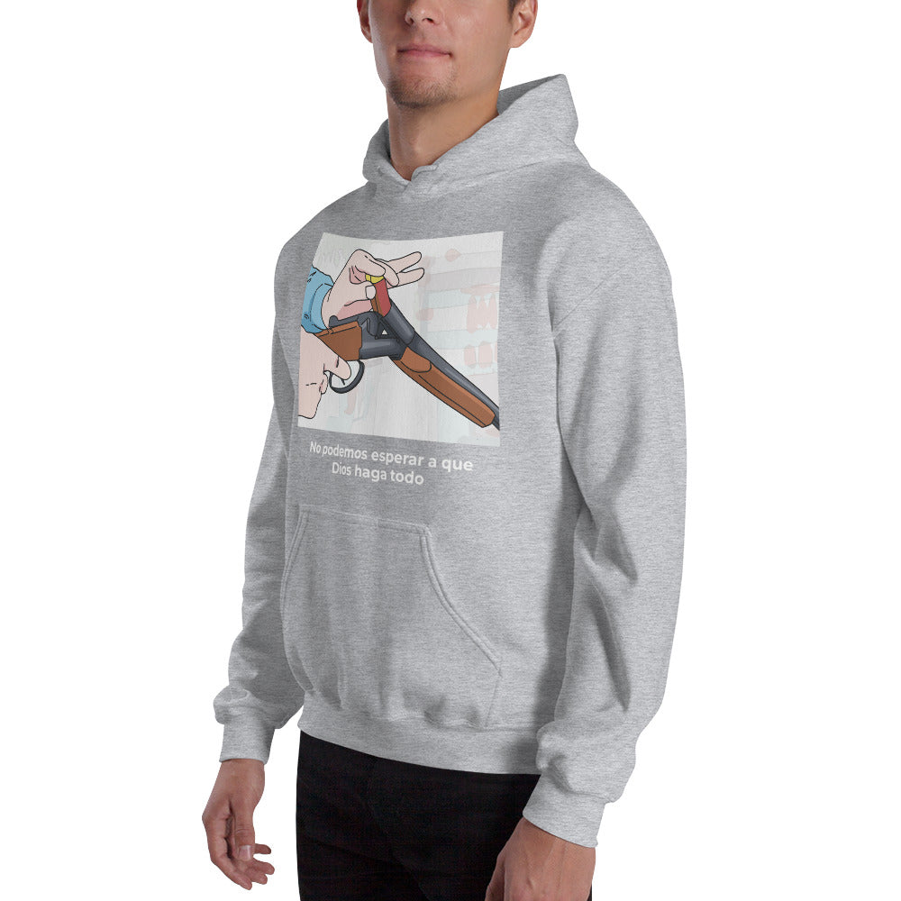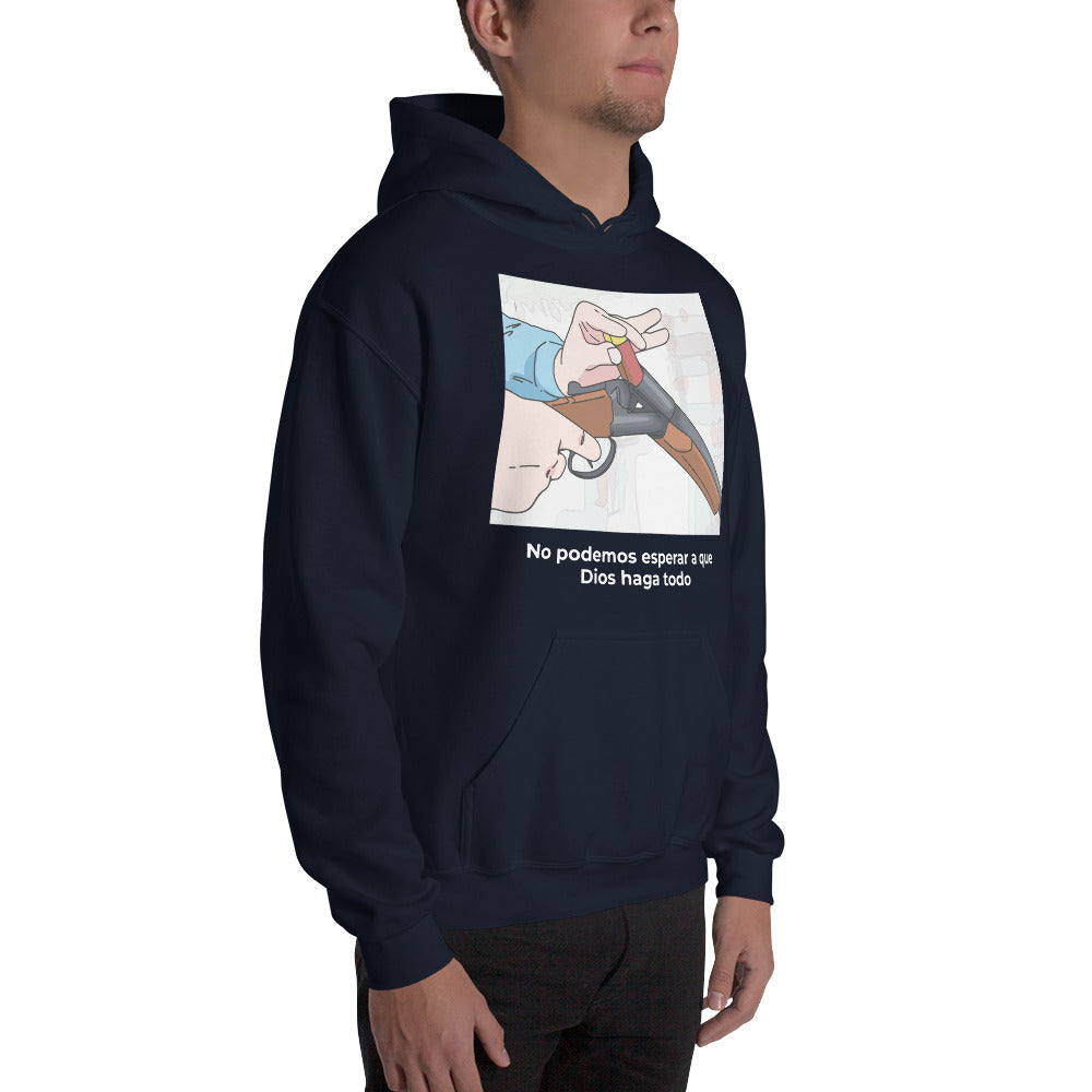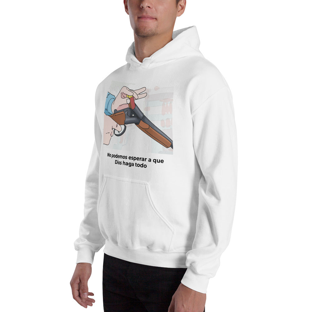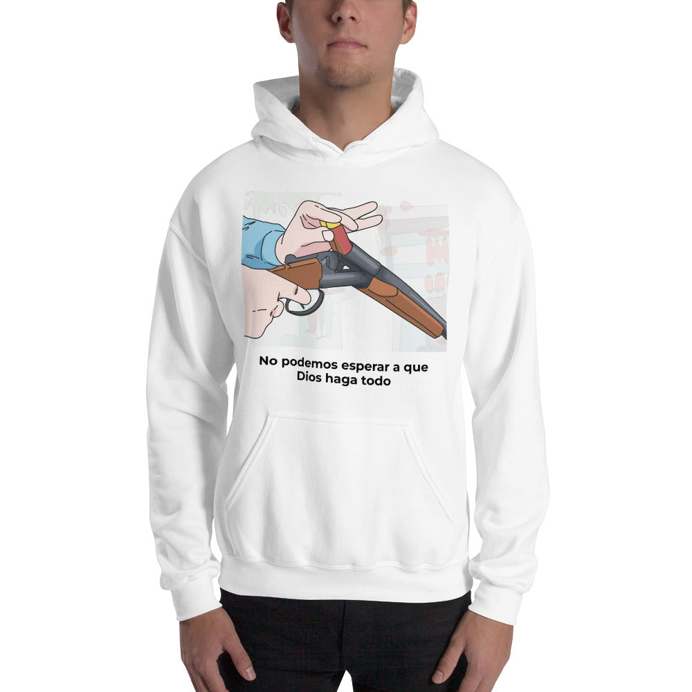 Sudadera hombre "No podemos esperar a que Dios haga todo"