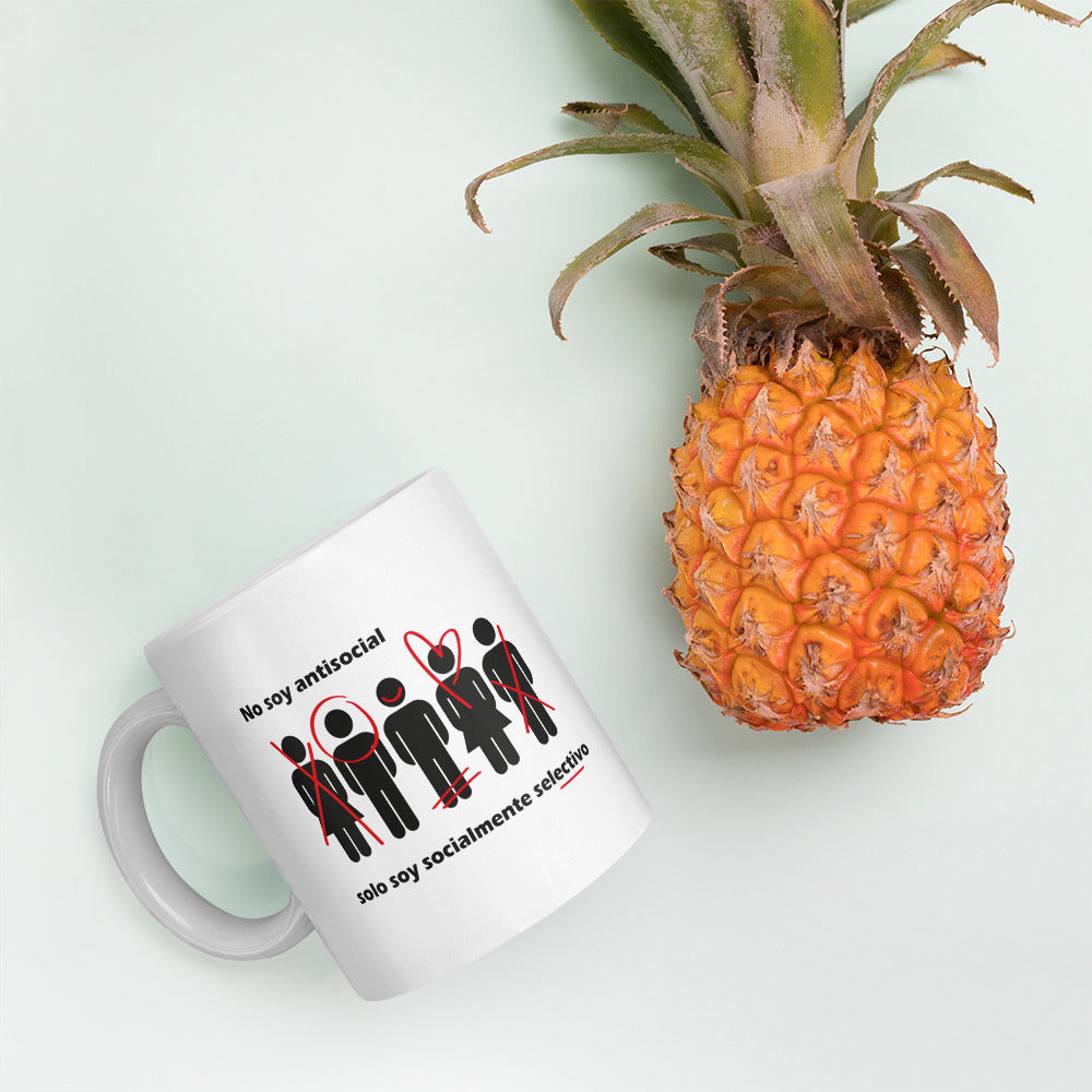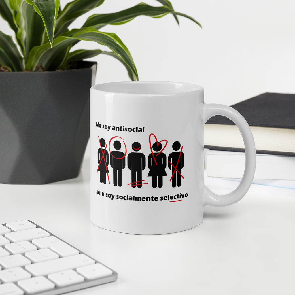 Taza frase irónica "No soy antisocial, solo estoy socialmente selectivo"