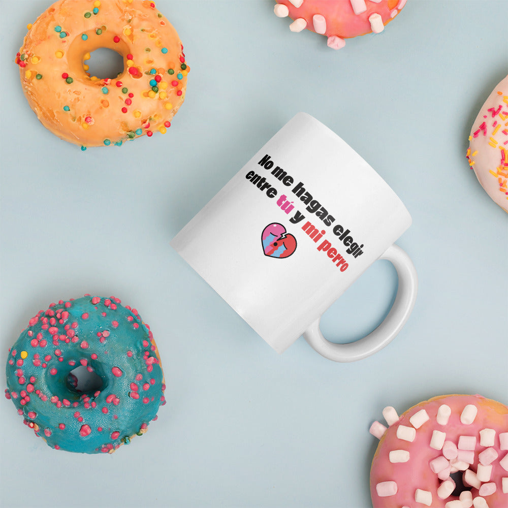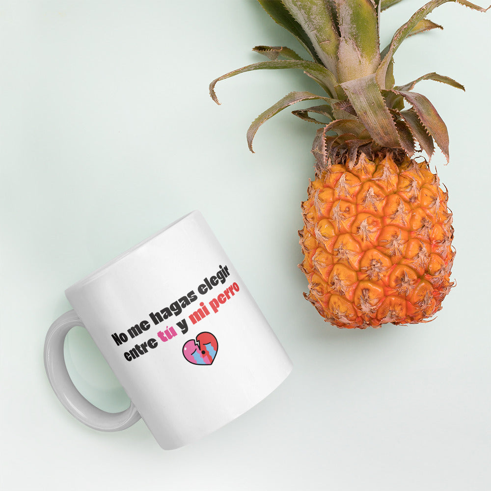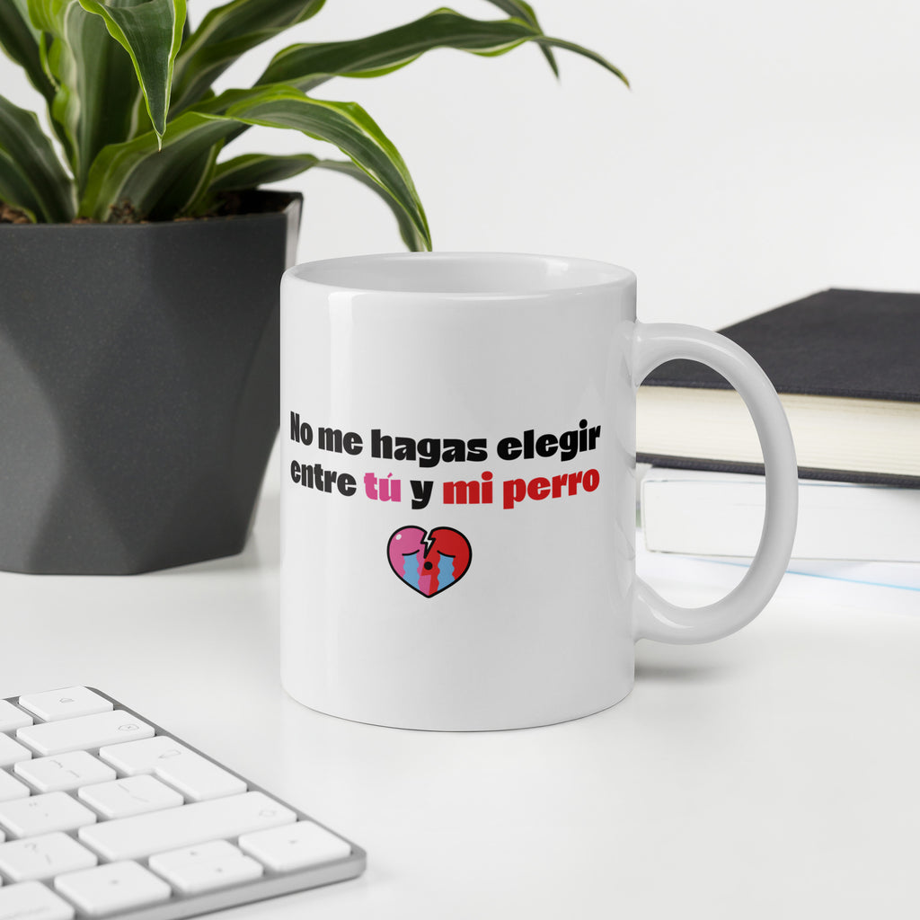 Taza frase irónica "No me hagas elegir entre tú y mi perro"