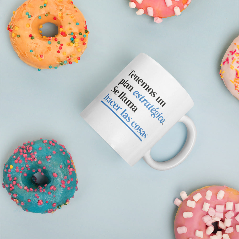 Taza motivacional "Tenemos un plan estratégico. Se llama hacer las cosas."